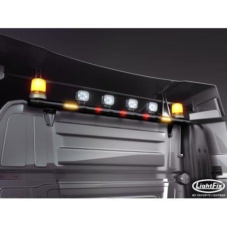 La rampe contient un faisceau de câbles pour projecteurs de travail, gyrophares, LED et stroboscopes – équipé d'une prise pour se connecter au câble jaune LightFix et à la cabine.